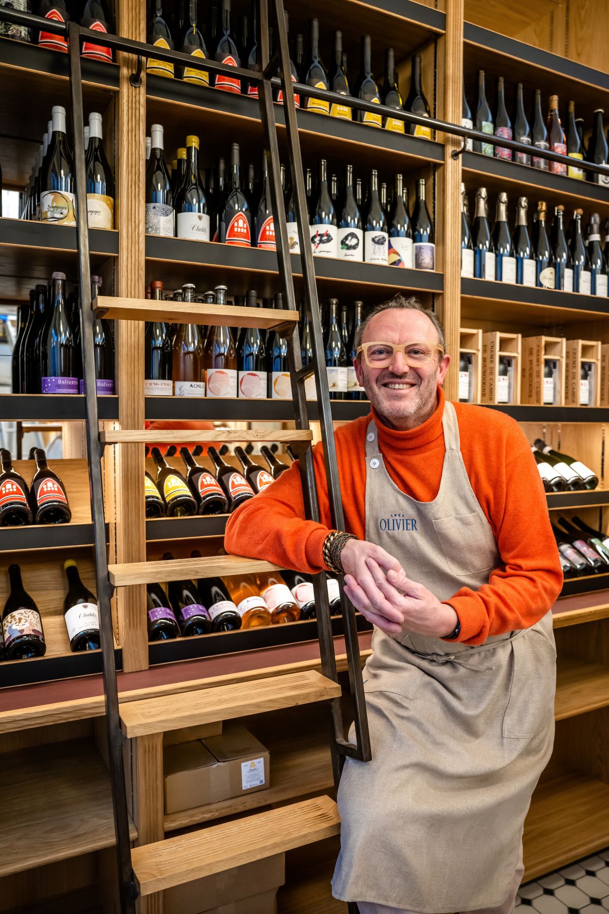 Mehrere hundert Flaschen sind in dem Store zu finden: ein Sortiment aus sorgfältig ausgewählten Weinen und Champagnern. Ein Cuvée von Clos des Vignes du Maynes aus der Bourgogne oder lieber ein Chenin von Gaec de l'Écotay aus Montreuil-Bellay — ausschließlich erhältlich im Geschäft von Olivier.