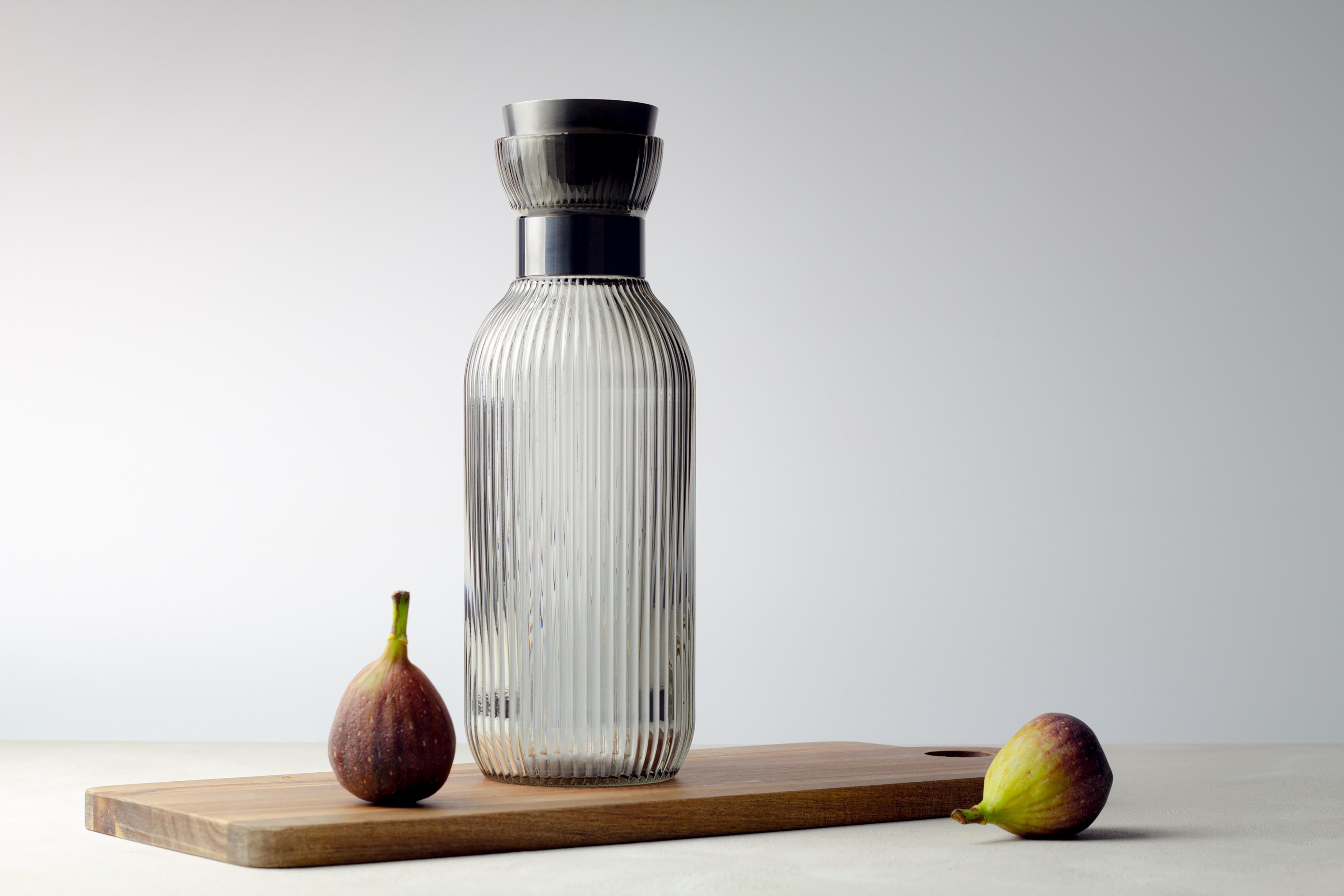 Mit der Auswahl an ästhetischen Farben wie „Crystal Silver“, „Crystal Gold“ mit hellem Glas, „Smoke Gold“ oder „Smoke Black“ mit grau getöntem Glas verleiht die vielseitig einsetzbare MAMEIDO Glaskaraffe neben dem im Sommer beliebten Infused Water auch diversen Getränken wie Eistee und Säften eine elegante Note.