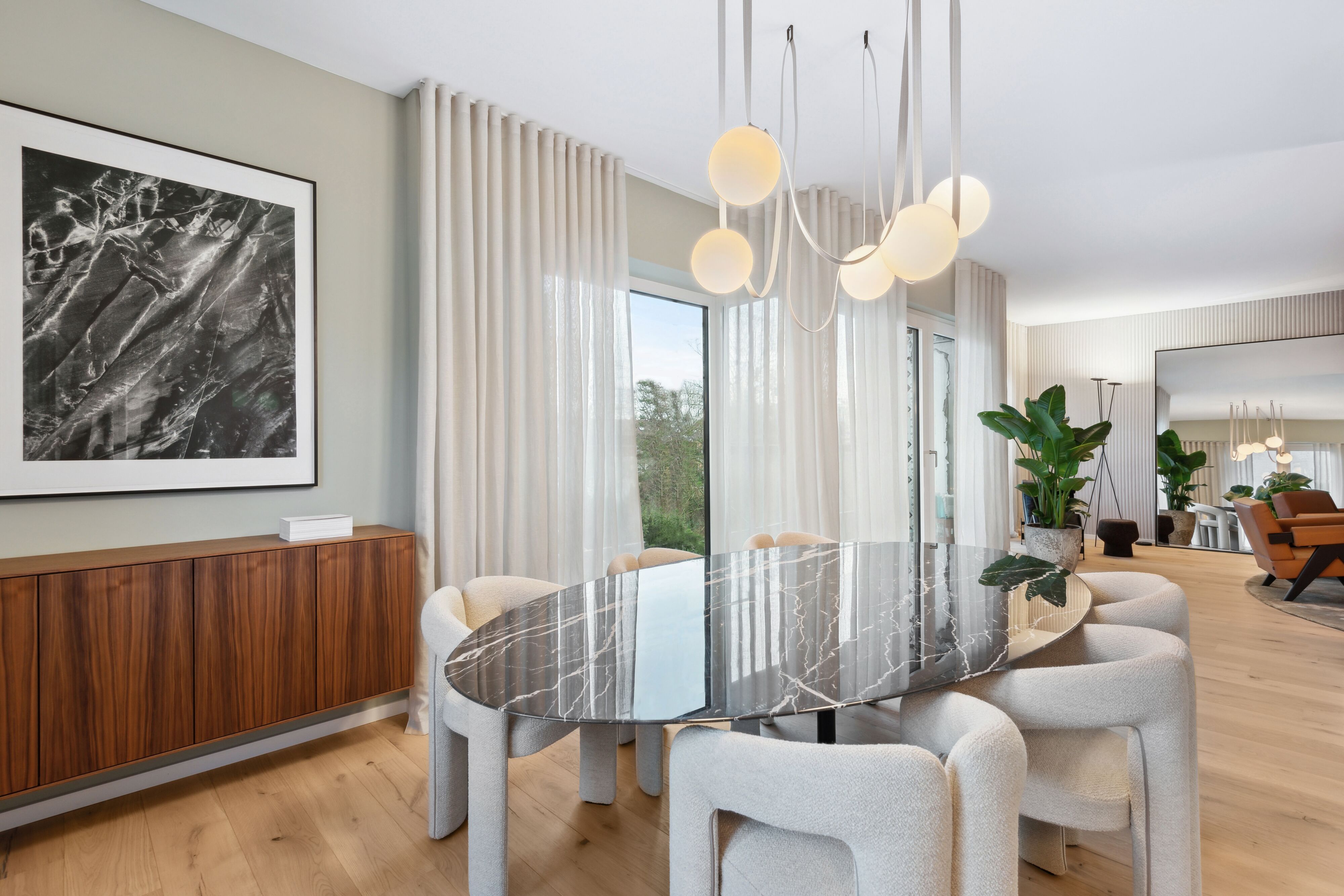 Zuschnitte von ca. 51 bis 352 m² bieten eine gelungene Raumaufteilung mit hohen Decken, und bodentiefe Fenster für lichtdurchflutete Räume. Zum Verweilen laden Balkone, Loggien oder Terrassen ein, eine zusätzliche Steigerung der Wohnatmosphäre. Ein weiteres Ausstattungshighlight bildet die Badausstattung namhafter Hersteller, die mit bodengleich gefliesten Duschen und großformatigen Fliesenbodenbelag aus Feinsteinzeug Funktionalität mit Wohnlichkeit vereint. Eine Tiefgarage mit Stell- und Elektro-Parkplätzen runden das Angebot ab. Das COCOON wird nach dem Energiestandard KfW 55 errichtet.