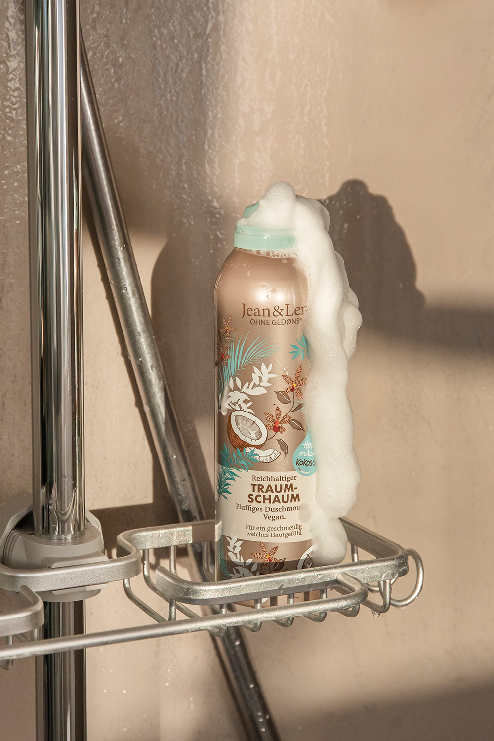 Die richtige Hautpflege beginnt in der Dusche: Der neue Jean&Len Traumschaum mit Gel-to-Mousse Technologie reinigt die Haut mit seiner luftig-schaumigen Textur besonders sanft. Dank der wohltuenden Pflegeformel, angereichert mit hydrierendem Vitamin E, Glycerin und Sojaöl, wird die Haut langanhaltend geschmeidig und ist ausreichend mit Feuchtigkeit versorgt. Der verwöhnende Traumschaum Arganöl & Feige hinterlässt durch Argan- und Jojobaöl ein samtiges Hautgefühl und einen fruchtig-floralen Duft, der den ganzen Tag anhält. Sinnlich-süß duftet hingegen der reichhaltige Traumschaum Kokos & Hafermilch, der dank feuchtigkeitsspendendem Mandelöl hautschützend und -pflegend wirkt. Beide Produkte verzichten auf Parabene, Silikone, Mikroplastik und Mineralöl.