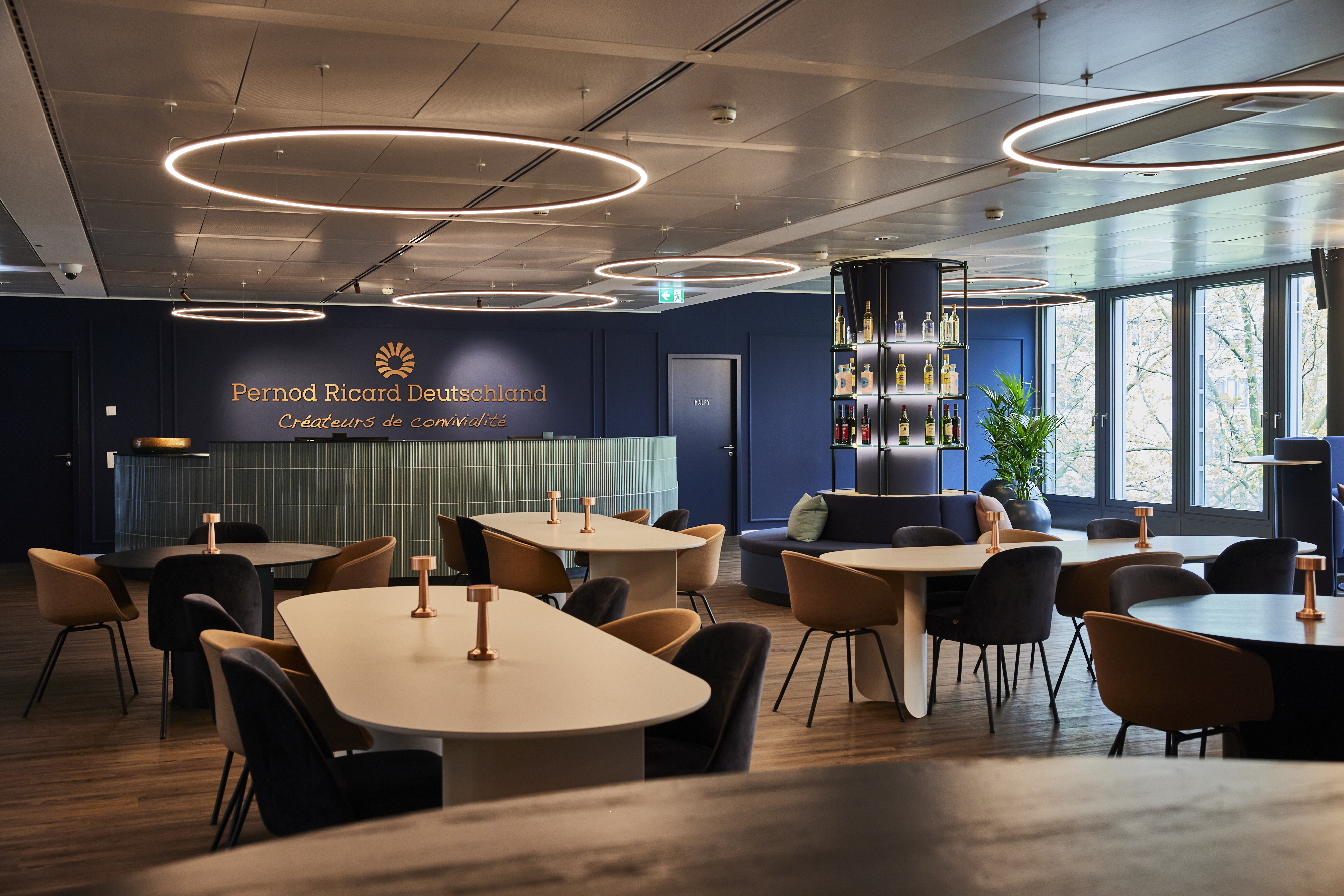 Durch die Zusammenarbeit mit Marian Krause, raum.atelier und Stil Manipulation GmbH hat die Welcome Area von Pernod Ricard Deutschland sein einladendes und kosmopolitisches Flair erhalten.
